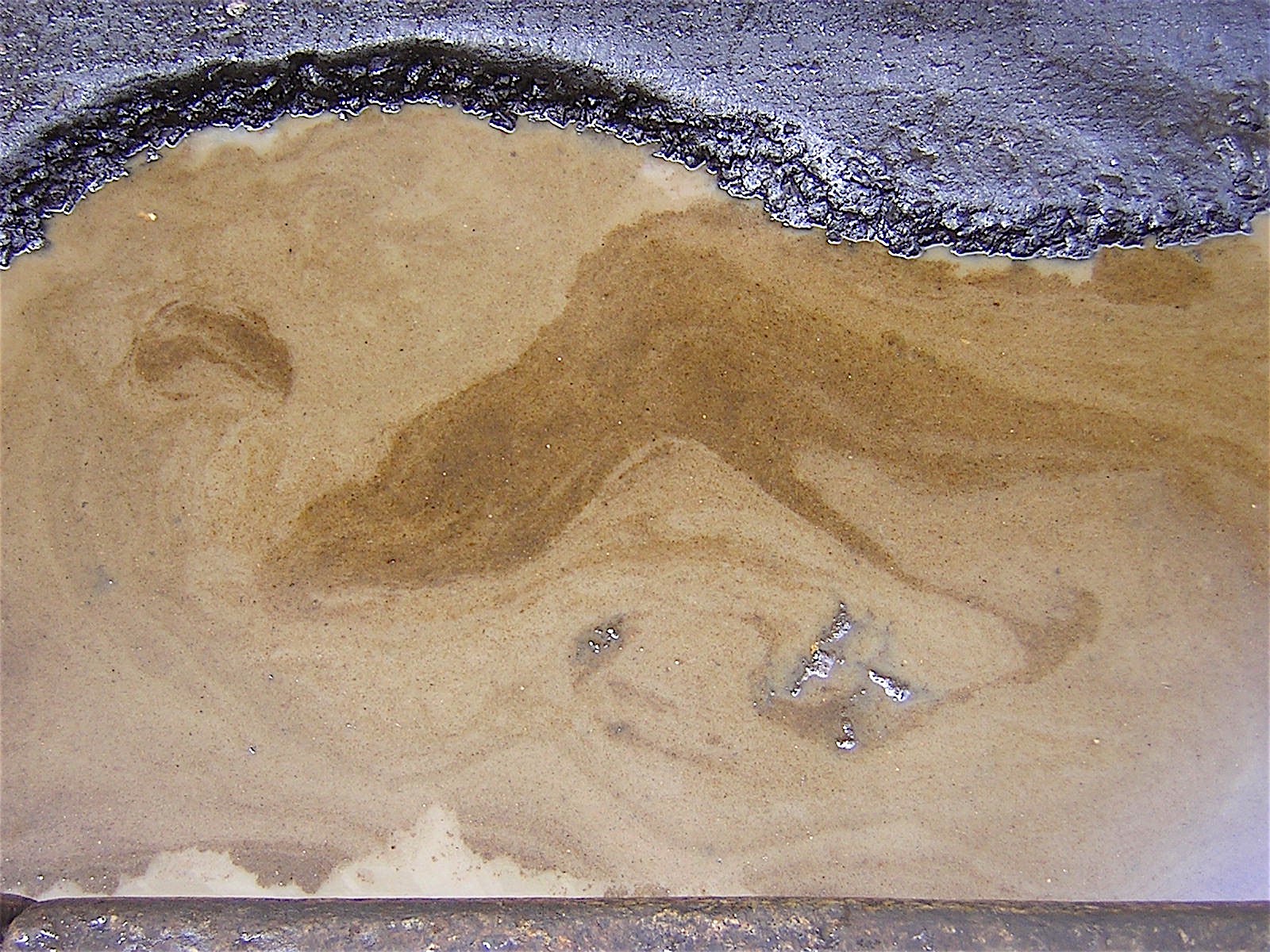 Second, let's do road schmutz. This is the grimy particulate matter that quietly darkens your sidewalk. It also shows up on your window sills, and happily gathers in abundance in the gutter, nestling up to the curbstone. My understanding is that this material is mostly hydrocarbon particulates coming out of the tailpipes of passing motor vehicles.